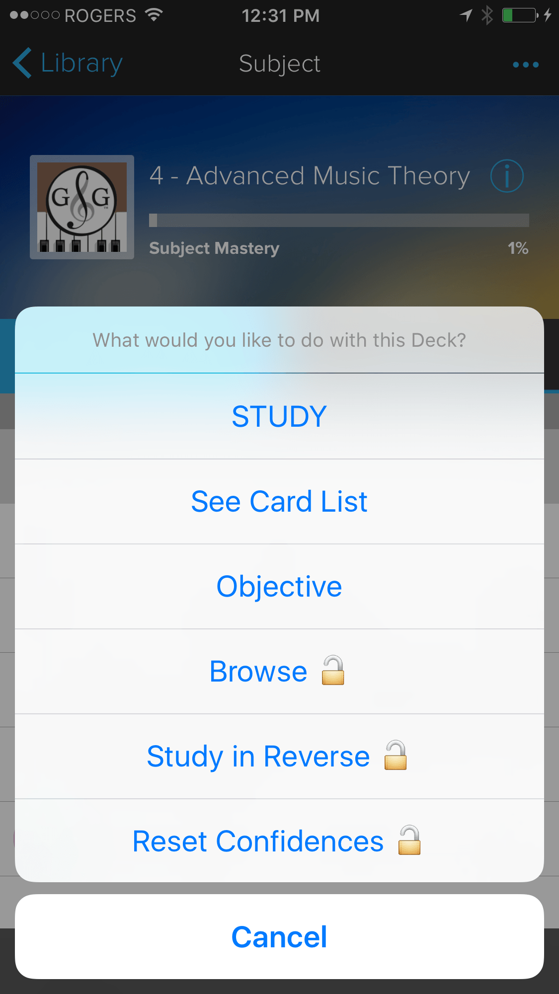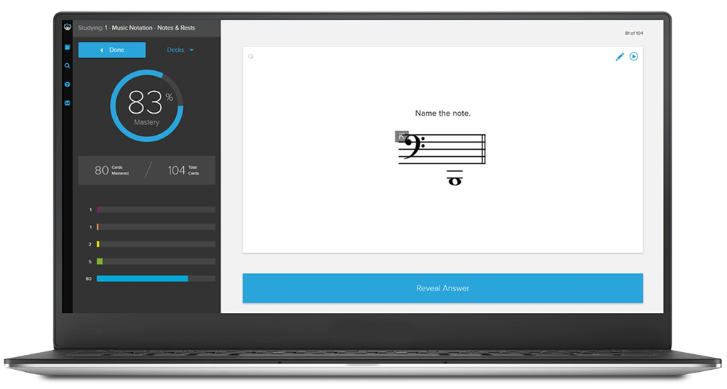 Develop ear training and sight reading skills. Choose how to study each deck. Challenge yourself to Subject Music Mastery!